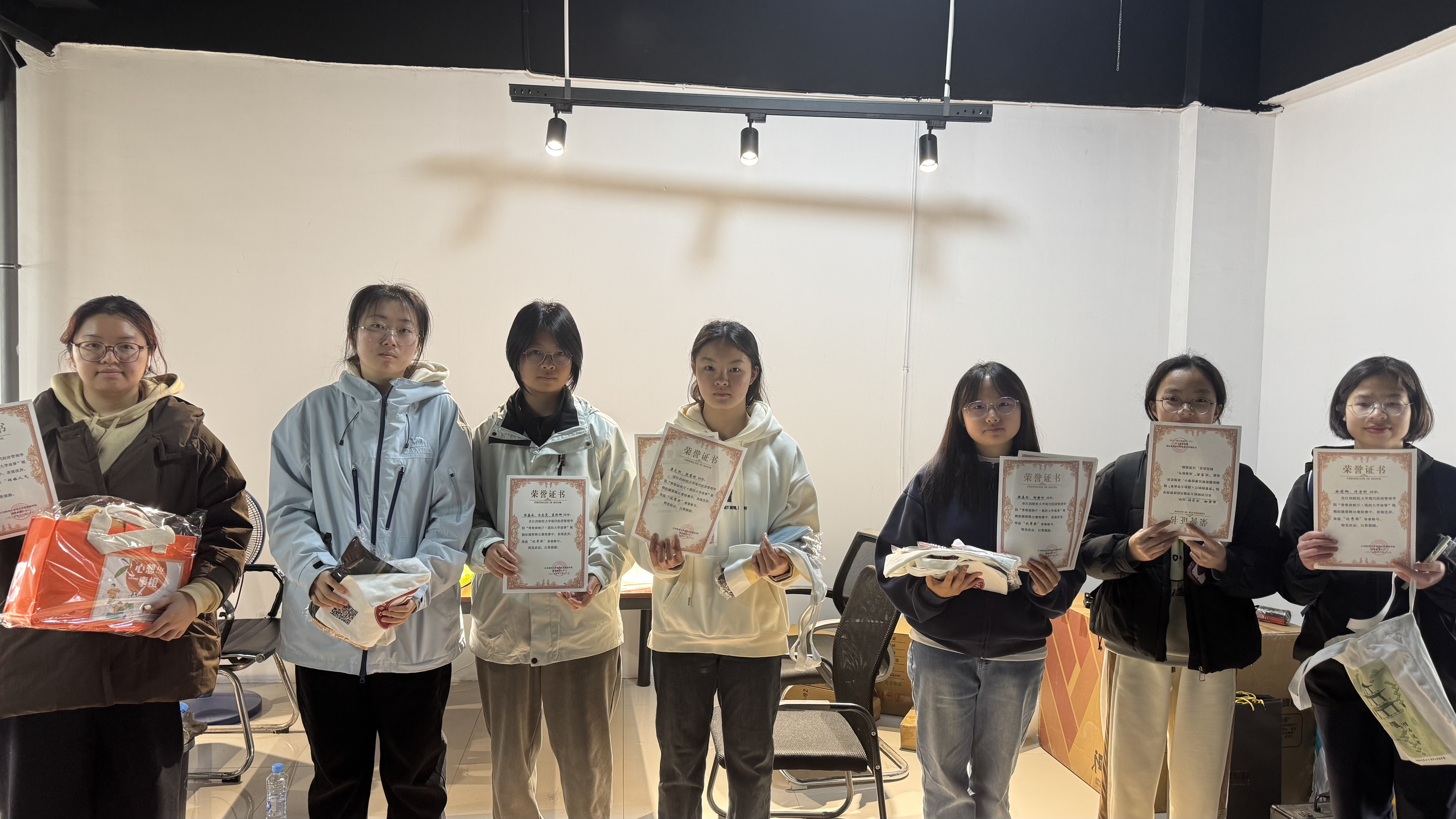 3月24日,获奖学生前往尚德数智电商基地领取荣誉证书与奖品。现场为获奖同学颁发小米充电宝、迷你保温杯、定制文具、帆布手提袋及人气大礼包。